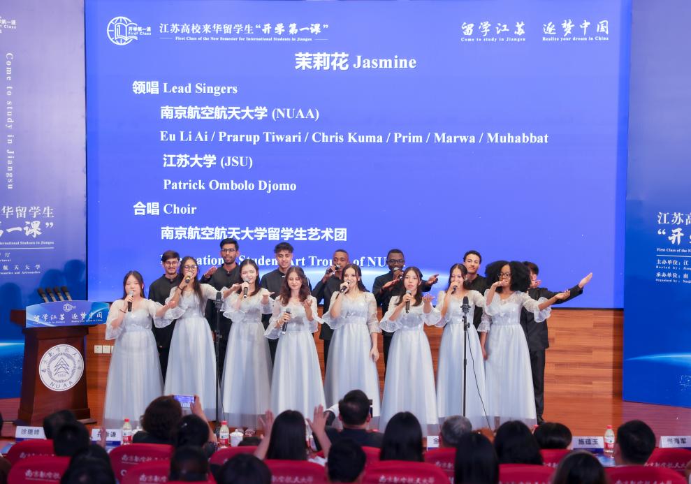 活动尾声,beat365外国留学生艺术团和江苏大学留学生代表共同献唱江苏经典民歌《茉莉花》,“开学第一课”圆满收官。
