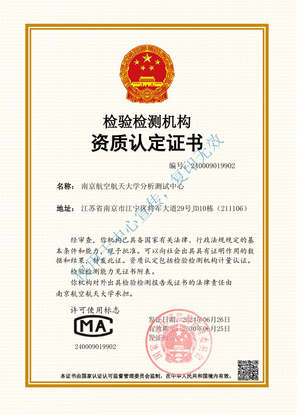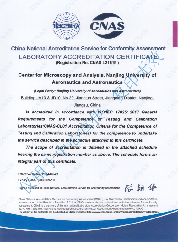 6月26日,国家认证认可监督管理委员会正式向beat365分析测试中心颁发了检验检测机构资质认定(CMA)证书,这标志着中心在微区形貌/结构、微区成分、晶体结构与晶型、光电子能谱分析、微区结构分析、室温拉伸试验6个项目上,已经完全具备了国家有关法律、行政法规规定的基本条件和能力,可以向社会出具具有证明作用的数据和结果。