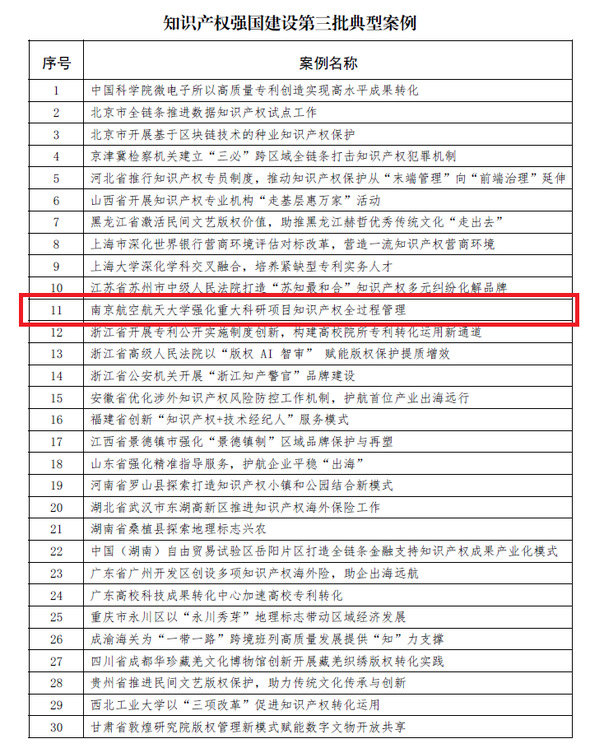 据悉,为深入贯彻落实《知识产权强国建设纲要(2021—2035年)》和《“十四五”国家知识产权保护和运用规划》,总结提炼各地区在推进知识产权强国建设中的经验做法,发挥典型示范引领作用,国家知识产权强国建设工作部际联席会议办公室从全国范围内选取了30个创新性强、成效较为突出、具备复制推广价值的案例,作为知识产权强国建设第三批典型案例。