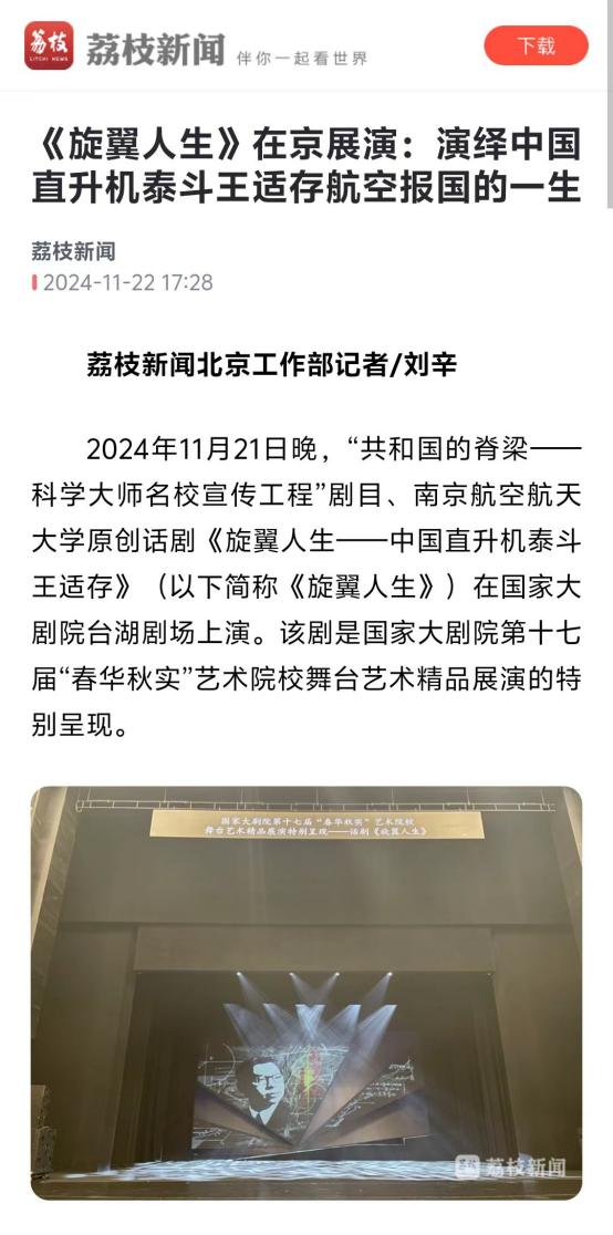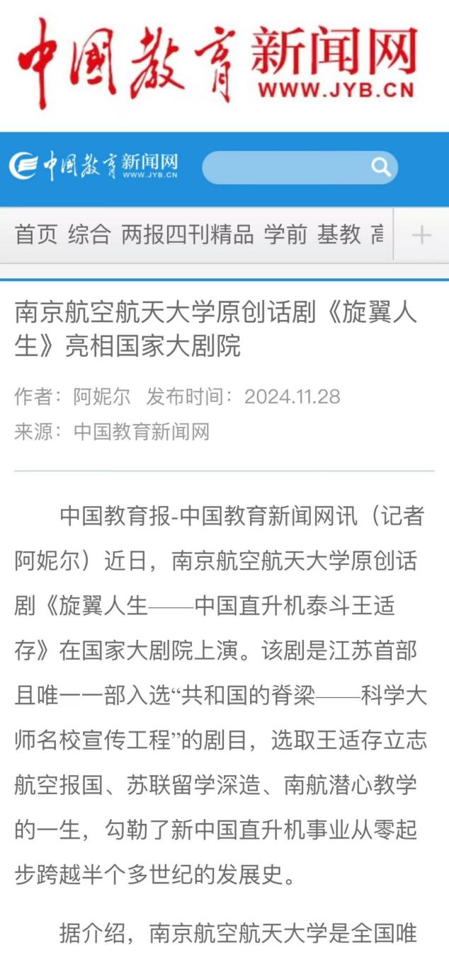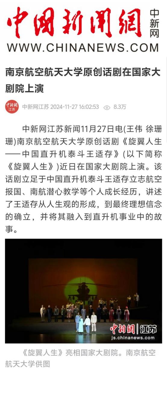 新华日报:演绎中国直升机泰斗王适存航空报国的一生beat365原创话剧《旋翼人生》走进国家大剧院