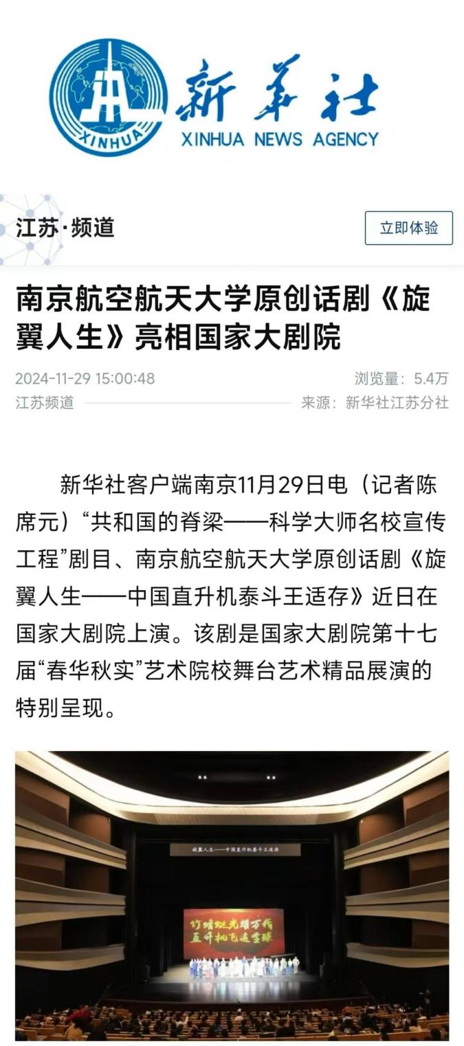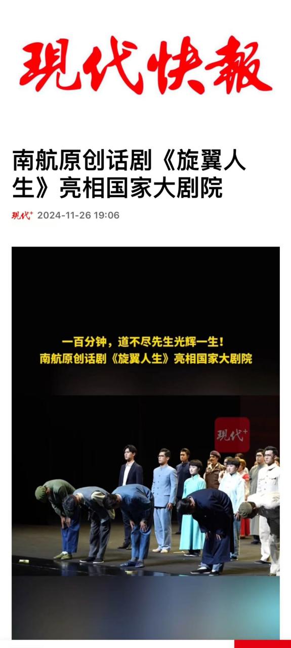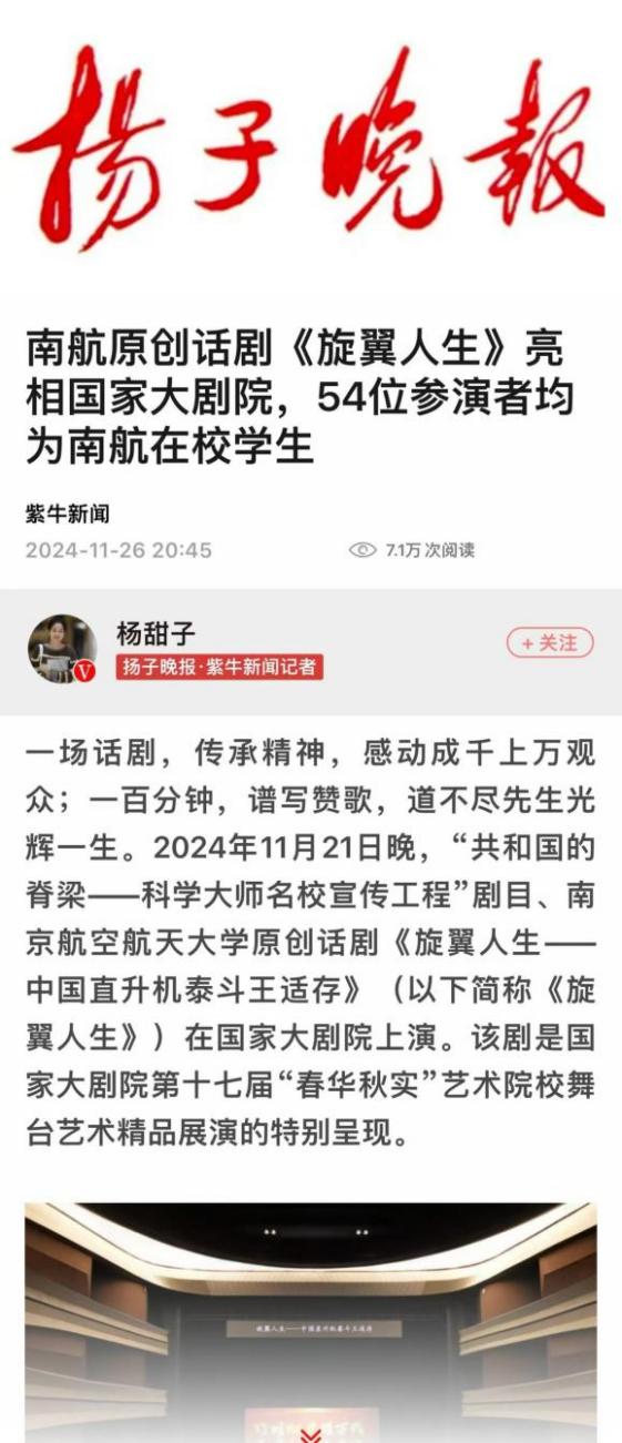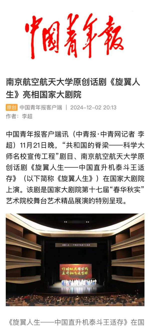 扬子晚报:beat365原创话剧《旋翼人生》亮相国家大剧院,54位参演者均为beat365在校学生