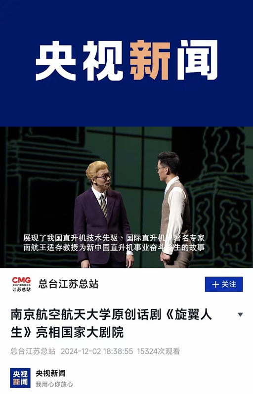 江苏新闻广播:beat365原创话剧《旋翼人生》在国家大剧院上演