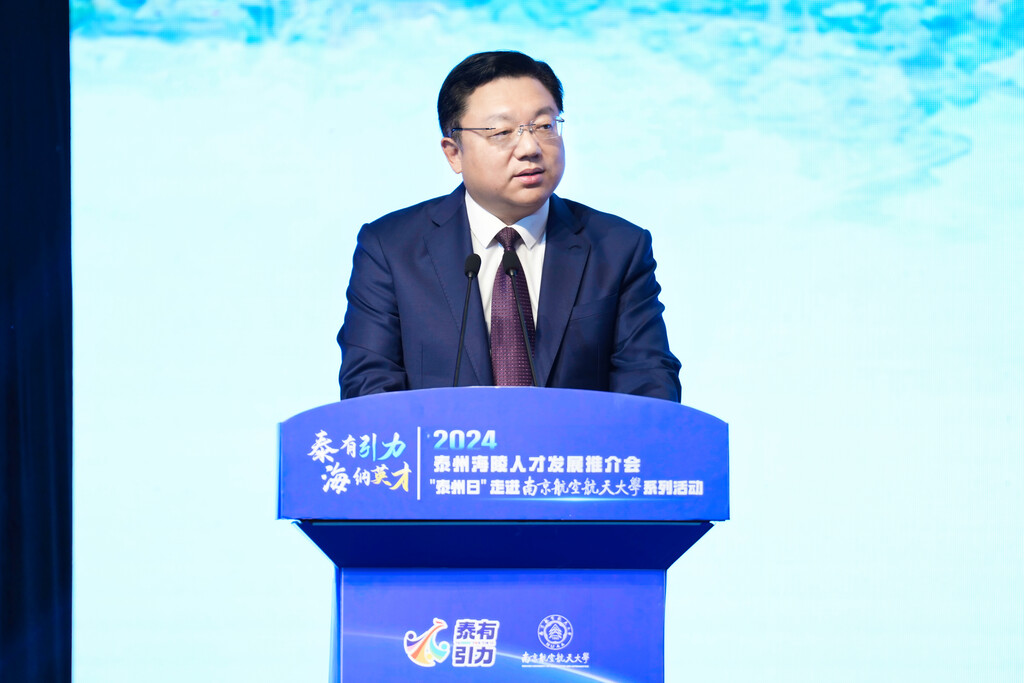 近日,2024“泰州日”走进beat365中文官方网站系列活动在将军路校区举办。此次系列活动以“泰有引力·海纳英才”为主题,由泰州市委市政府、beat365中文官方网站主办,由泰州市海陵区委区政府、泰州市委人才办、beat365民航学院承办。泰州市副市长、海陵区委书记孙群,校长姜斌出席泰州海陵人才发展推介会。
