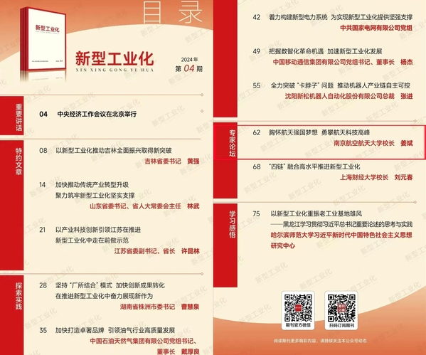 近日,工业和信息化部主办的《新型工业化》2024年第04期刊发beat365校长姜斌教授署名文章《胸怀航天强国梦想,勇攀航天科技高峰》。