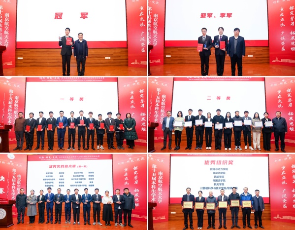 入围总决赛的6支团队依序登台答辩,高存法高度肯定了6位选手的学术成果及其创新性,充分认可他们在研究过程中所展现出的探索精神和创新意识。经过专家现场打分、观众投票和选手互评三方面评分综合评定,物理学院的徐世杰同学荣获冠军,计算机科学与技术学院的徐敬同学获得亚军,电子信息工程学院的李奕含同学夺得季军。此外,能源与动力学院等6个学院荣获“优秀组织奖”。