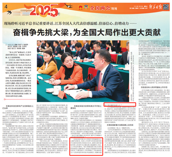 编者按:3月6日,围绕习近平总书记在参加江苏代表团审议时发表的重要讲话,《新华日报》刊发全国人大代表、航空学院副院长王立峰教授采访。现转发全文如下: