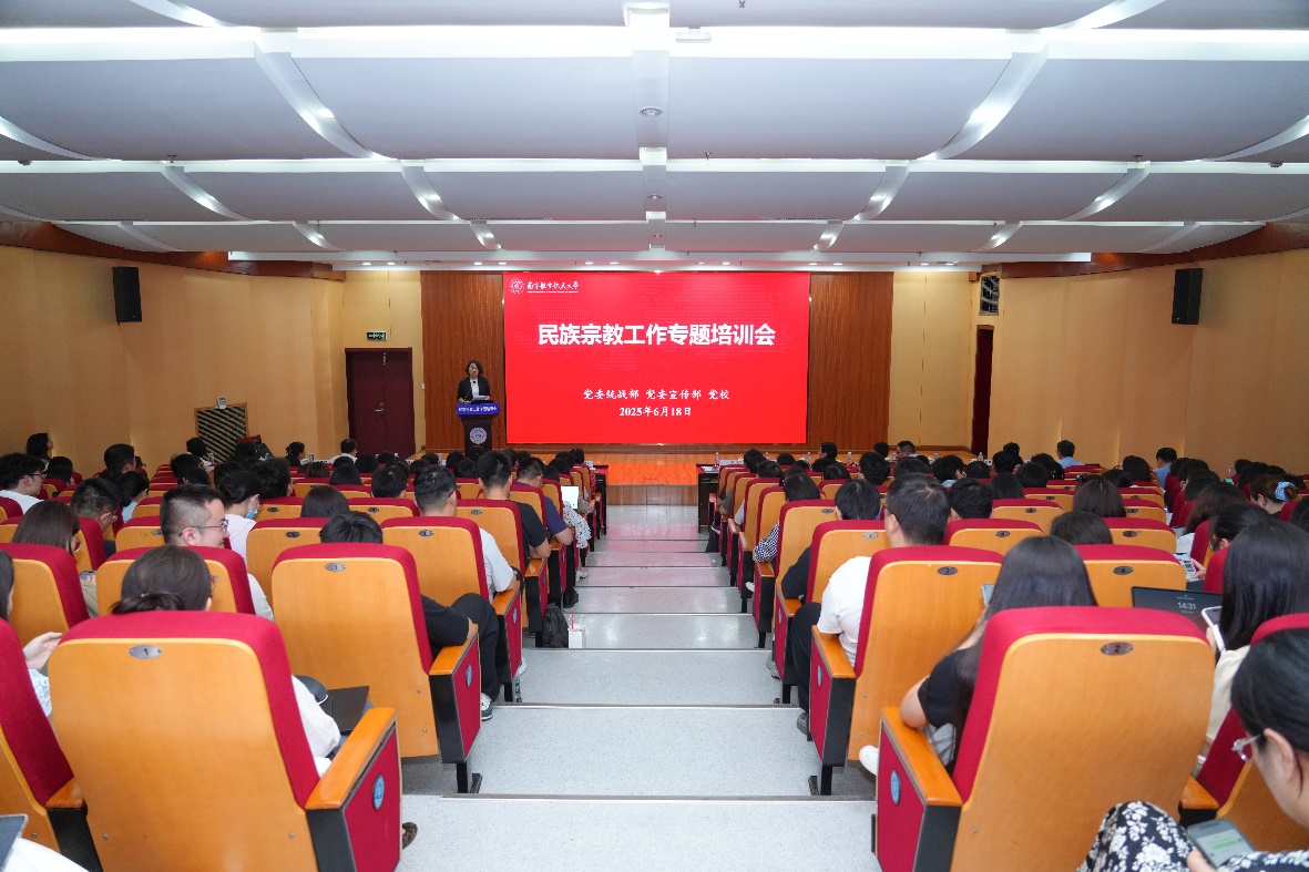 学校民族宗教工作领导小组成员单位负责同志,各院级党组织书记、组织员(统战员)、宣传信息员,各学院党委副书记、团委书记,以及全体专兼职辅导员等200余人参加培训。