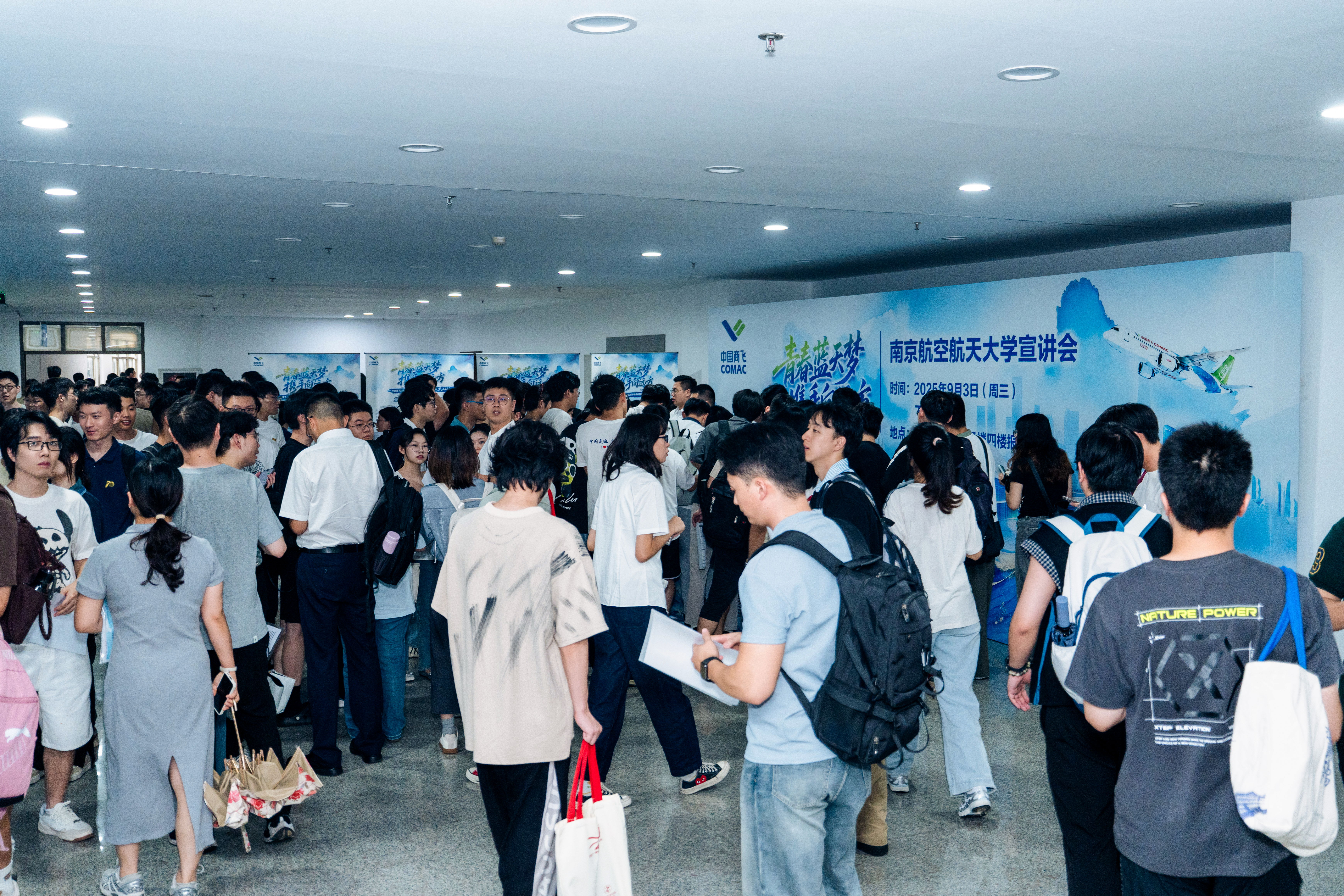 中国商飞人力资源共享中心、各单位人力资源部负责人、面试官、校友代表、就业工作相关人员及2026届毕业生现场参会。