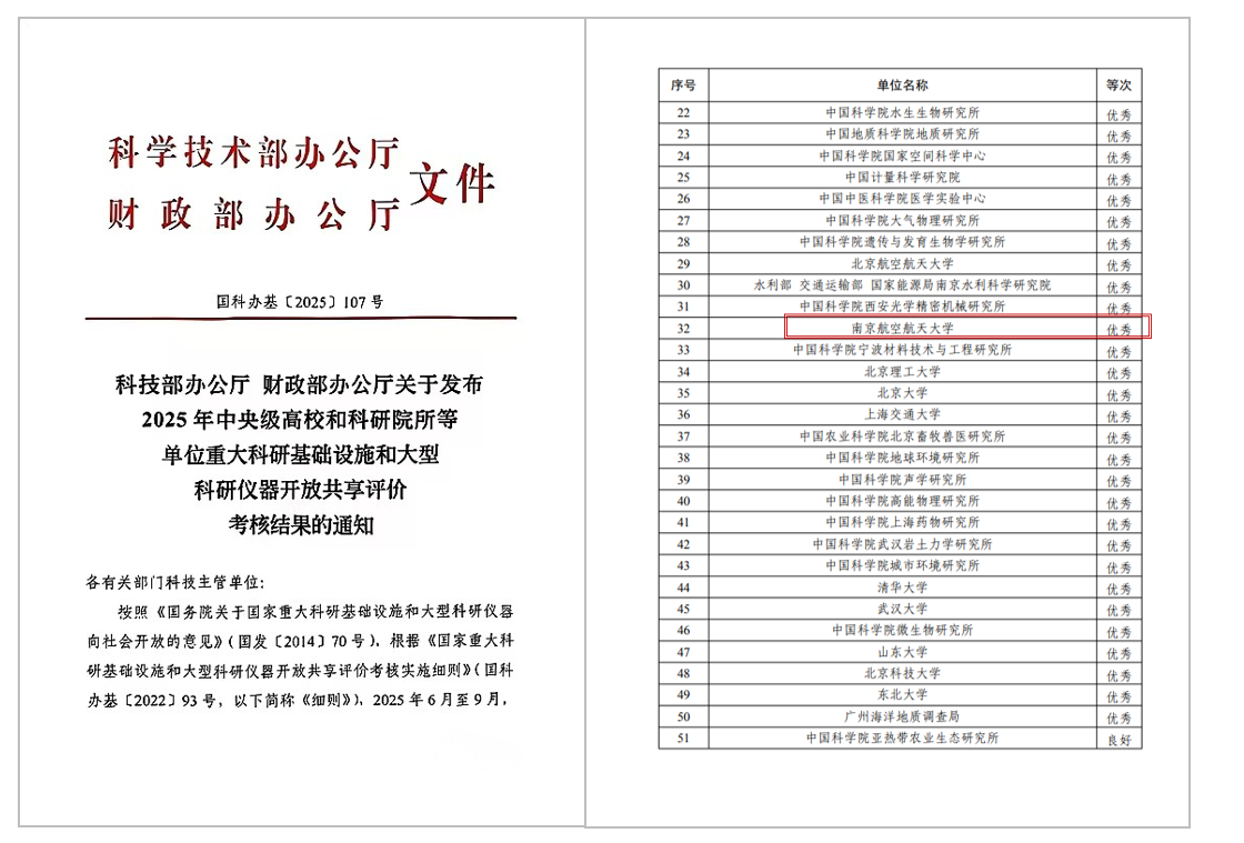 10月10日,科技部、财政部联合发布2025年中央级高校和科研院所等单位重大科研基础设施和大型科研仪器开放共享评价考核结果,beat365再获优秀等级,并于“十四五”期间第四次获此佳绩,成为工信部部属高校及江苏省内高校获得优秀等级次数最多的高校之一。本次评价考核共有26个部门344家中央级高校和科研院所参加。