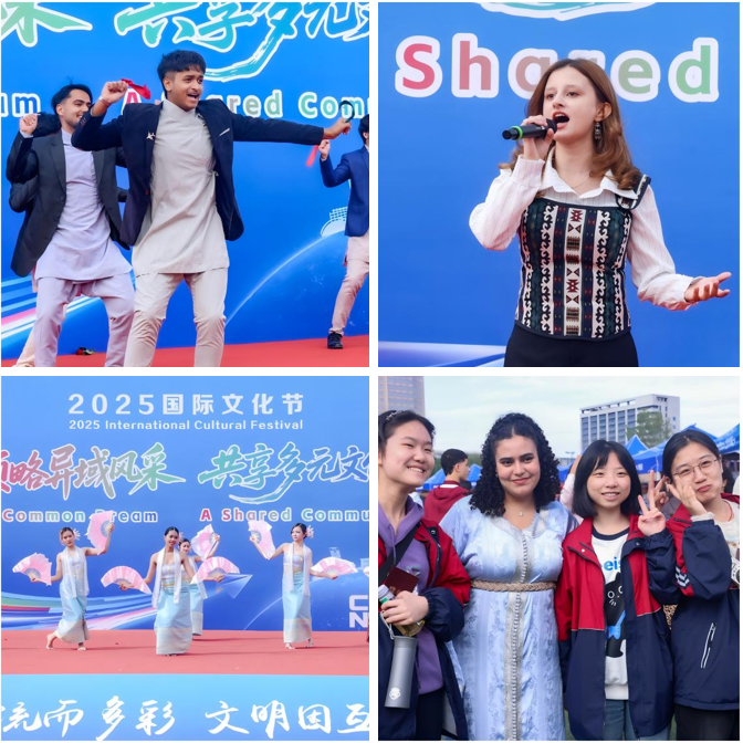 来自塔吉克斯坦、泰国、印度尼西亚、马拉维、巴基斯坦、孟加拉国和摩洛哥等国的留学生们依次登台,为现场观众带来了极具特色的歌舞表演,他们用舞蹈和音乐传递各国独特的文化魅力,赢得现场观众的阵阵掌声。校领导、中外学生走进各国展台,集章打卡、品尝美食、亲手制作手工艺品,共赴一场文明互鉴的校园文化盛宴。