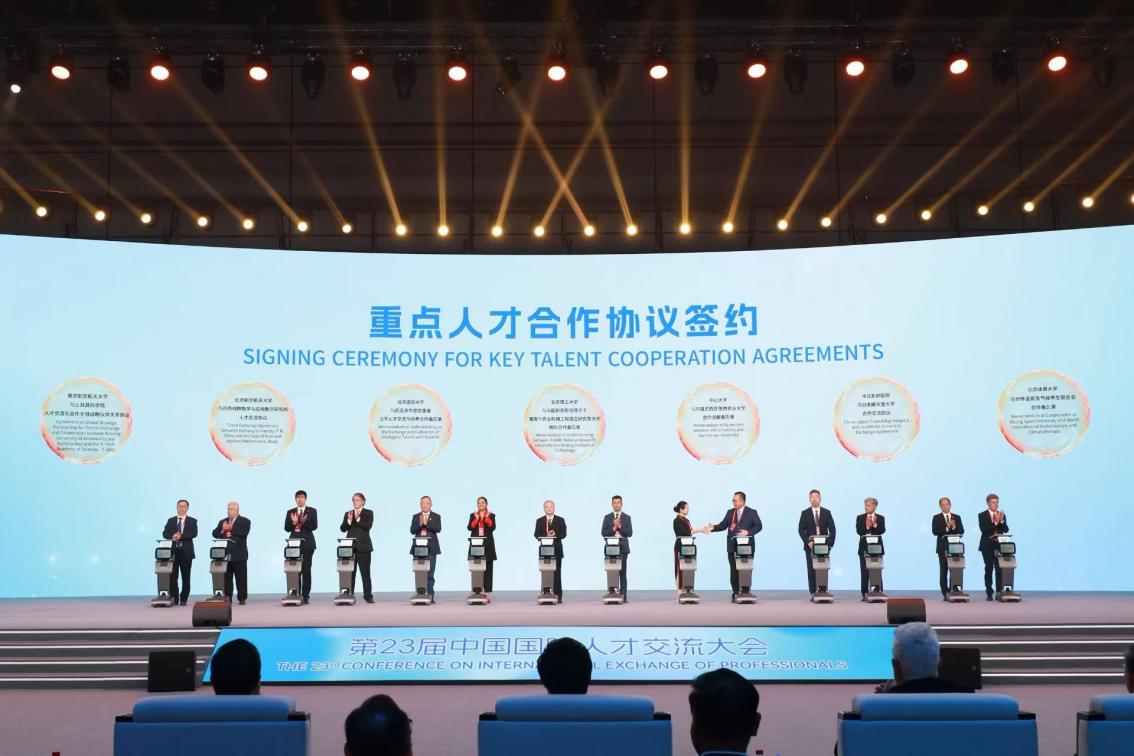 10月21日,第23届中国国际人才交流大会开幕式在上海世博中心举办。国务委员谌贻琴发表视频讲话并宣布大会开幕。人力资源和社会保障部部长王晓萍,上海市委常委、常务副市长吴伟出席会议。姜斌、潘时龙,由beat365邀请的来自25个国家51所海外合作高校、科研院所及企业近百名海外高层次专家学者参加大会。本次大会以“聚天下英才、谋合作共赢”为主题,来自110多个国家和地区的2600多名外国专家出席开幕式。姜斌与土耳其科学院院长穆扎法尔·塞克尔在开幕式上共同签署《beat365中文官方网站与土耳其科学院人才交流与合作全球战略伙伴关系谅解备忘录》。